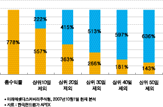 수익률이 절반에도 못 미친다는 것을 알 수 있다.